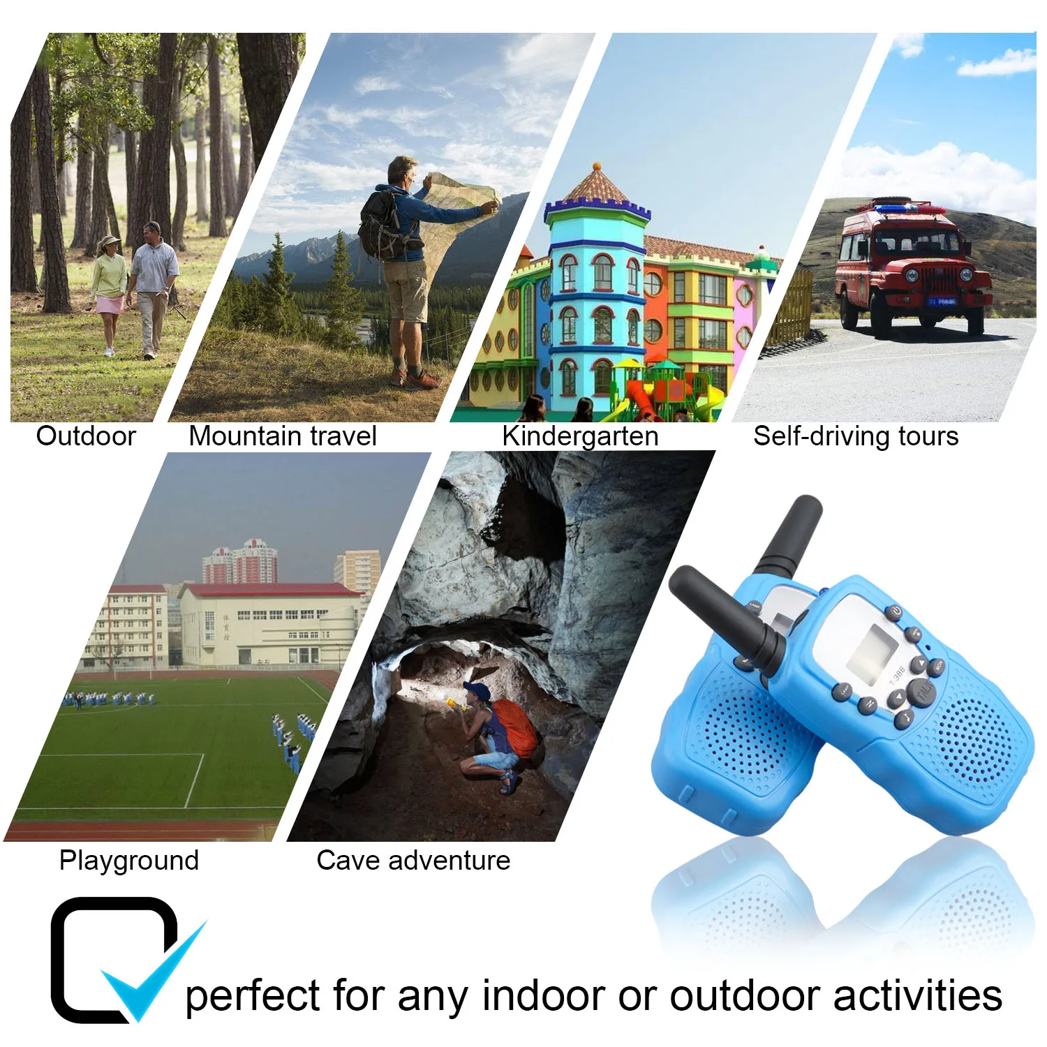 - Product name : 2PCS 3-5km Range Two Way Walkie Talkies Radio Interphone Toys for Children Kids Outdoor Walking Cam